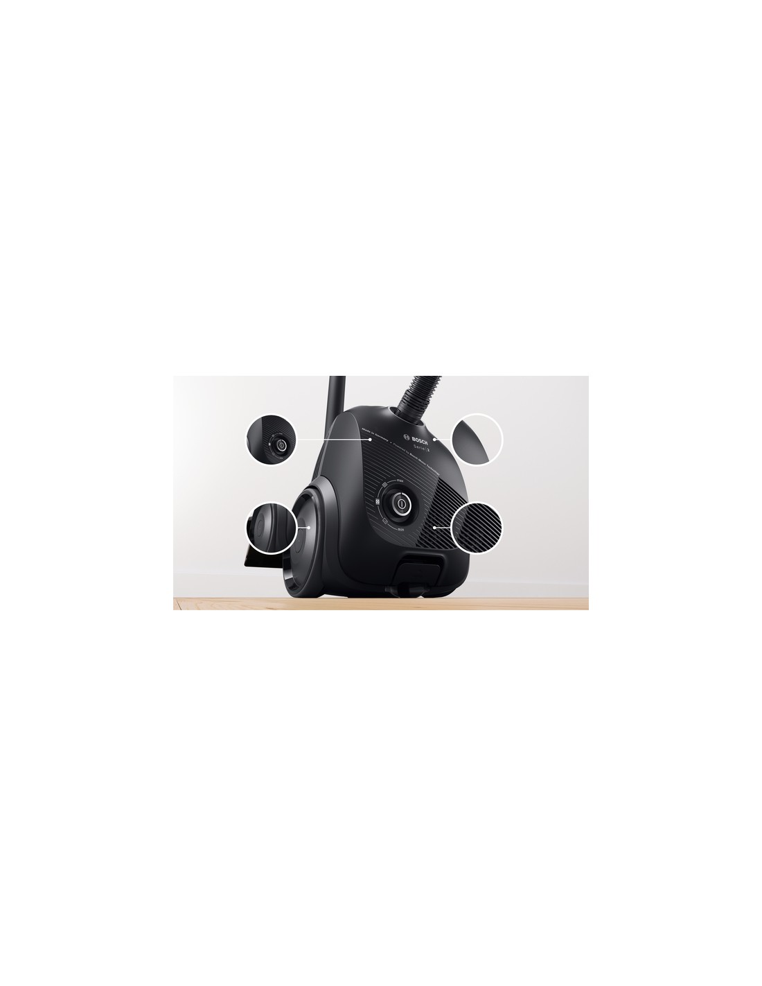 Sistema de filtradoBolsColorNegroPropuesta diferencialPara el día a díaDimensiones (AltoxAnchoxFondo)237x290x367 mmPeso - limoiador solo3.0 kg10 años de garantía en el motor1Nota inicial 1: Condiciones de garantía en https://www.bosch-home.com/motor-warranty/SíPotencia de entrada nominal (2010/30/CE)600 WTipo de regulacion de potenciaElectrónico - giratorioFiltroMicrofiltración, Filtros lavablesTipo de enchufeEnchufe Gardy son conexión a tierraIndicador bolsa llenaNingunoNivel de ruido80 dB(A) re 1pWCapacidad del depósito/bolsa de polvo3.5 lLongitud del cable de alimentación eléctrica500 cmRadio de acción8 mRecoge cableautomáticoCepillo para alfombra, moquetaMecánicoAlmacenamiento de accesoriosNo integradoAccesorios incluidos1 x Boquilla para hendiduras, 1 x Boquilla para tapicerías, 1 x Cepillo universal, 1 x Cepillo para suelos durosMaterial del tuboMetalTubo telescopicoSíSistema de guardar tuboSiSistema de almacenamiento de tuboSíNumero de ruedas3Material de la mangueraPlá