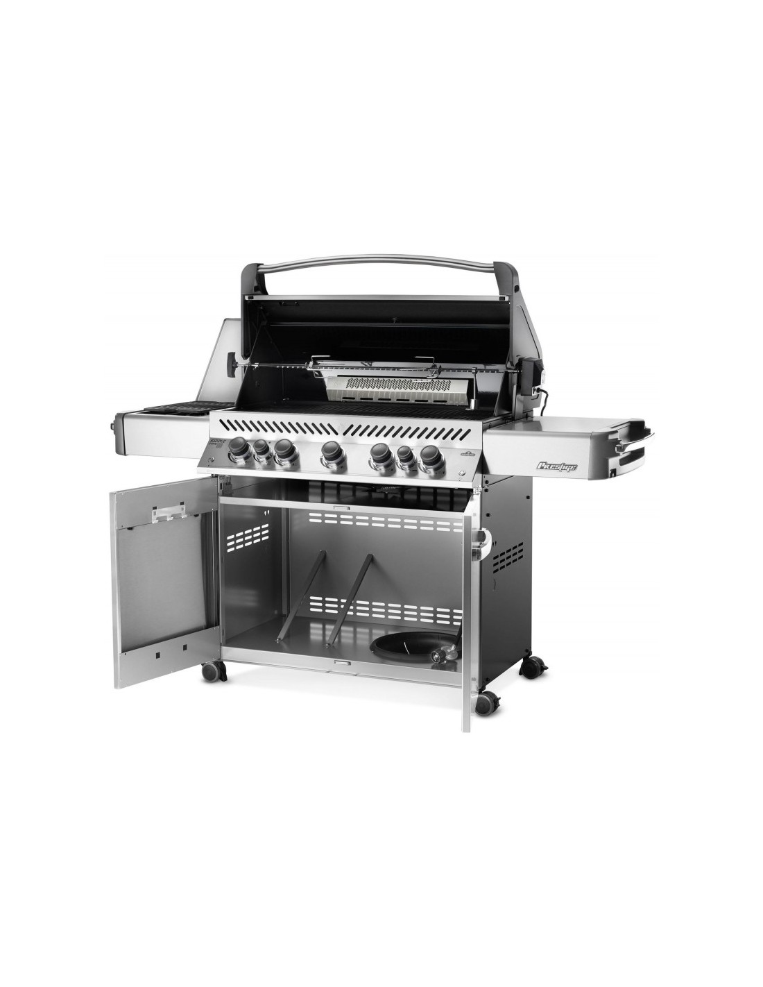 La parrilla de gas propano Prestige® 665 de Napoleon con quemadores traseros y laterales infrarrojos es el paquete total de parrillas; con una impresionante campana de porcelana esmaltada en acero inoxidable y una estructura de acero inoxidable, esta barbacoa modelo de carro de tamaño completo tiene las funciones de una cocina al aire libre completa. Con cinco quemadores principales, un quemador infrarrojo trasero y lateral, con esta parrilla, puede cocinar con ocho estilos de cocción únicos. Sabrá que está usando un producto de Napoleon con las rejillas WAVE™ icónicas que le permitirán obtener esas marcas de sellado únicas. No es solo duradera en el exterior; debajo de la tapa, el acero inoxidable es de la misma calidad que el que se utiliza para el lavabo, los quemadores de tubo, las placas de sellado de dos niveles y las rejillas. Las placas de sellado de acero inoxidable brindan un área de superficie adicional para que se evaporen las gotas que caen de sus alimentos y evitan las llamaradas excesivas. Nunca más deje su barbacoa encendida ya que todas las parrillas de la serie Prestige® vienen con la función SafetyGlow, gracias a la cual las perillas de control se iluminan de color rojo cuando el quemador está encendido.