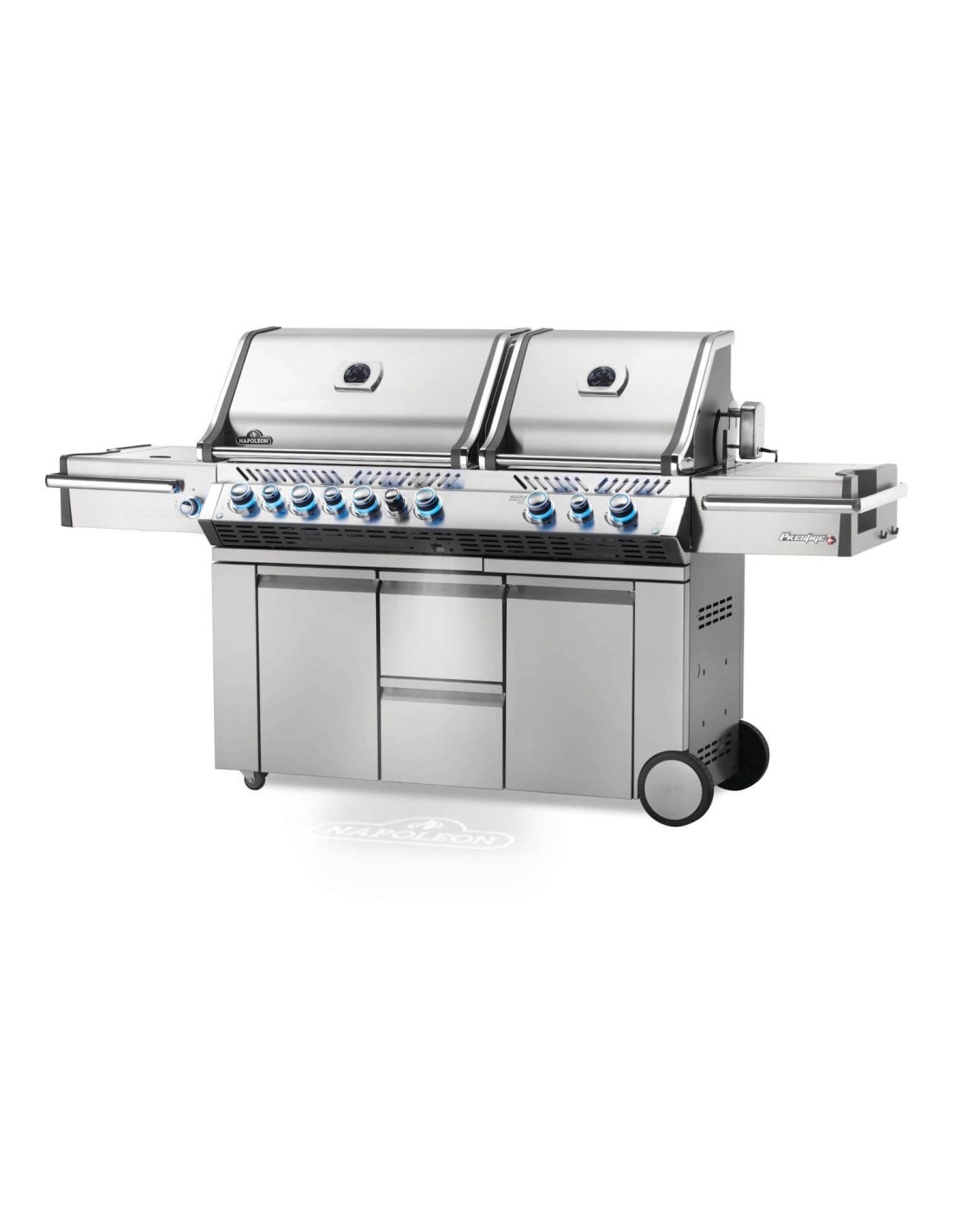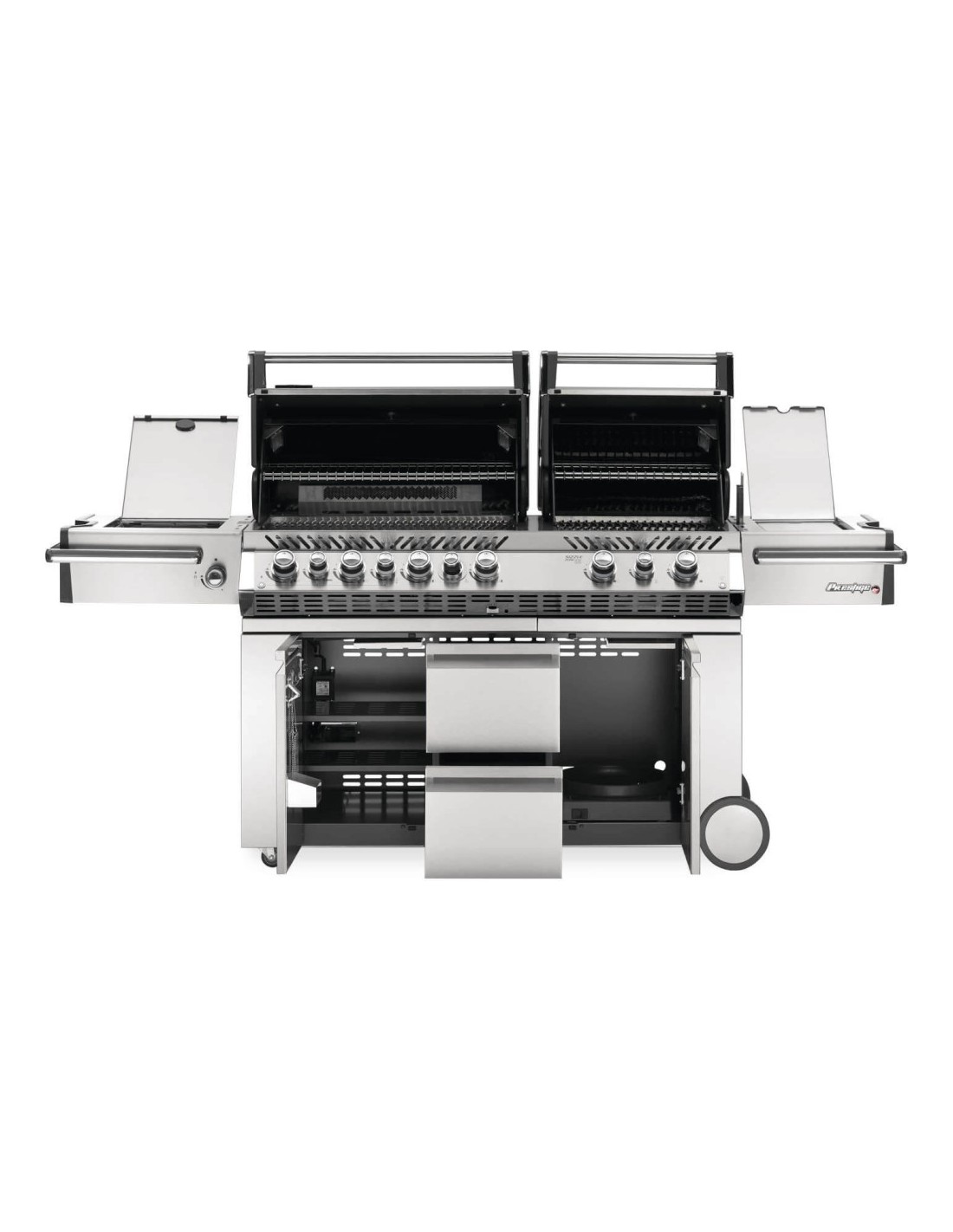 Equipada con características avanzadas, como potentes quemadores, zonas de cocción múltiples, e iluminación LED, la Prestige PRO 825 proporciona un control preciso y versatilidad para tus asados. La amplia área de cocción te permite preparar varias delicias al mismo tiempo, mientras que los detalles cuidados, como los mandos iluminados y los tiradores de alta calidad, refuerzan su estatus de lujo.