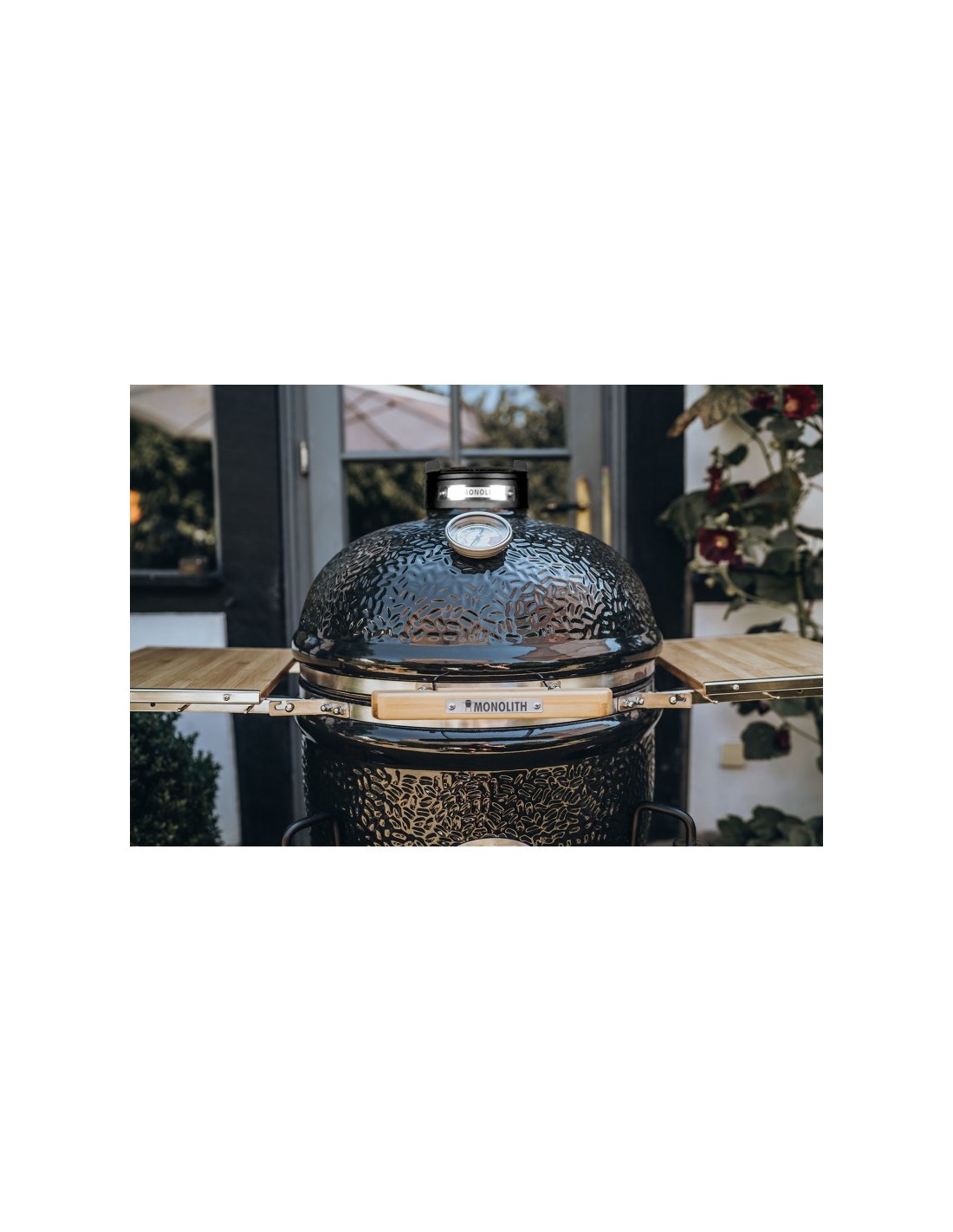 La funcionalidad de la barbacoa kamado modelo Monolith Classic se puede ampliar gracias a un amplio surtido de accesorios como el rustidor, parrillas de hierro fundido, piedra refractaria para pizza y pan, sistema de wok e incluso una Plancha Fry-top que hacen del Kamado Monolith una verdadera cocina al aire libre.