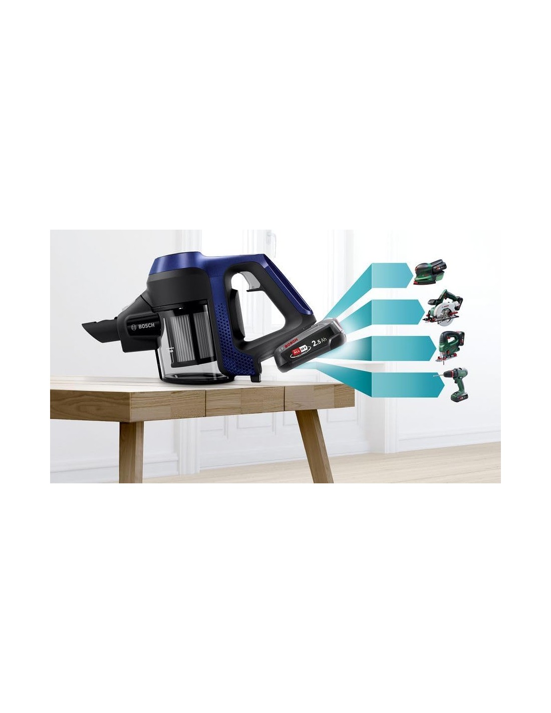 Aspiradora sin cable, con autonomía ampliable y con un cuidado diseño. Su batería intercambiable forma parte del sistema Power for ALL Alliance, lo que permite que sea compatible con numerosas herramientas de Bosch PowerTools de 18V como taladros, destornilladores....