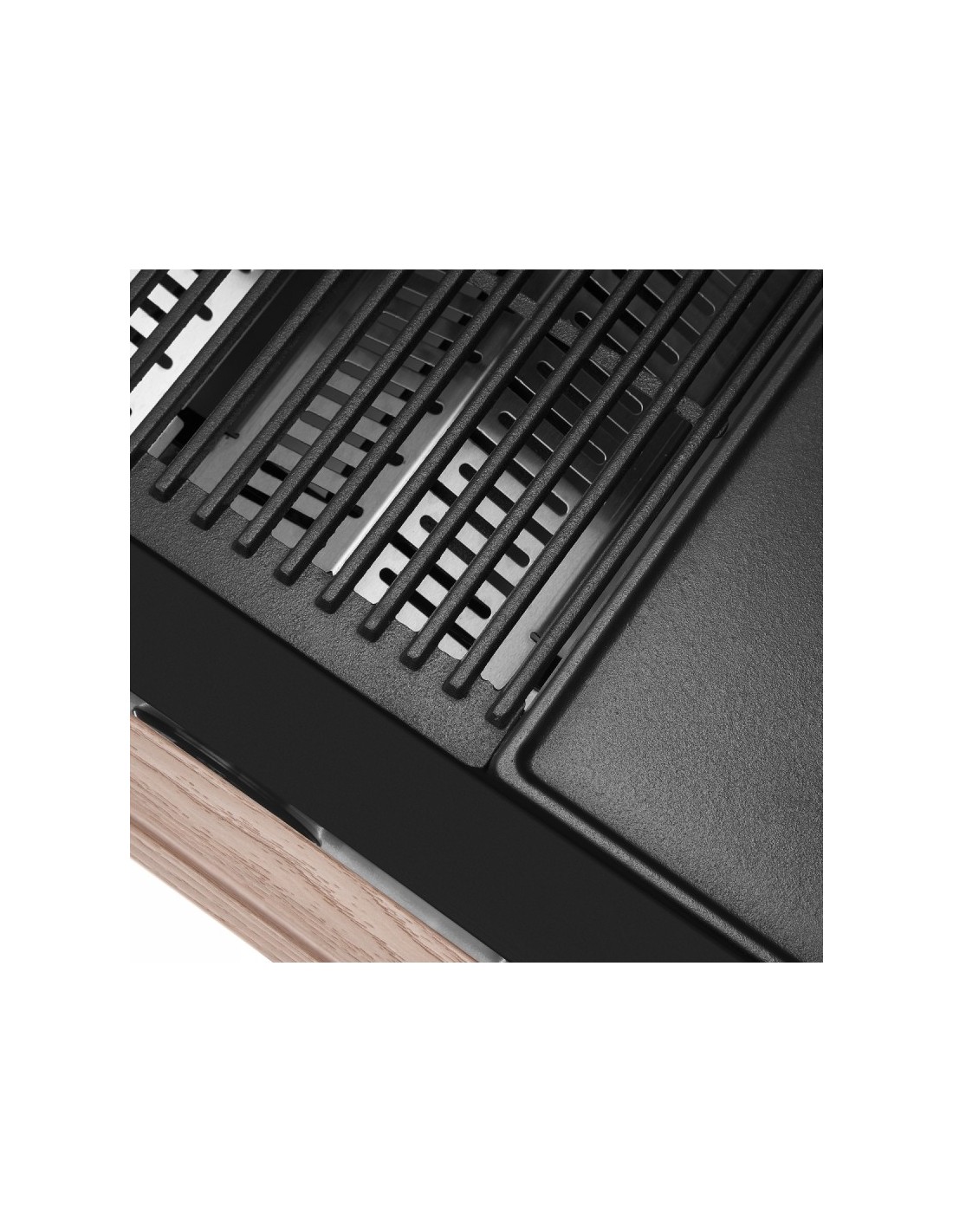 - Superficie de cocción con tratamiento anticorrosión patentado y acabado en porcelana mate.