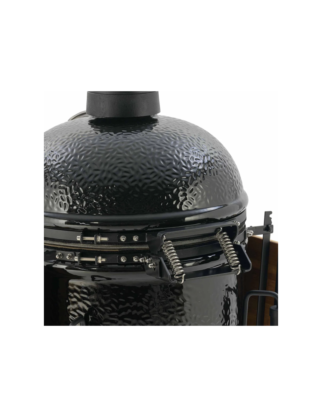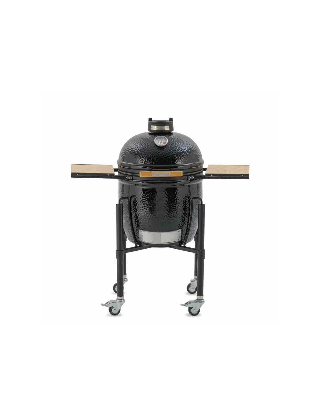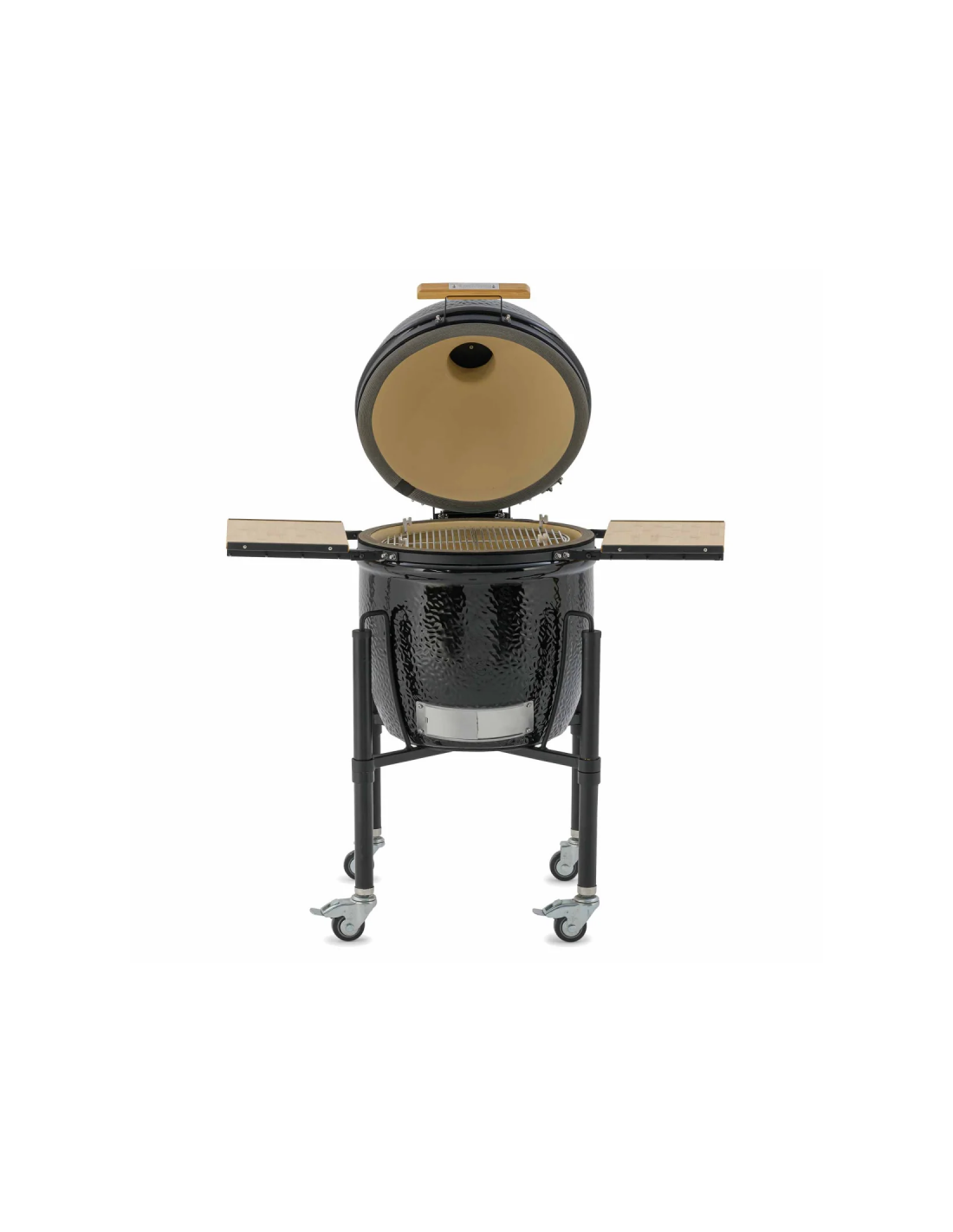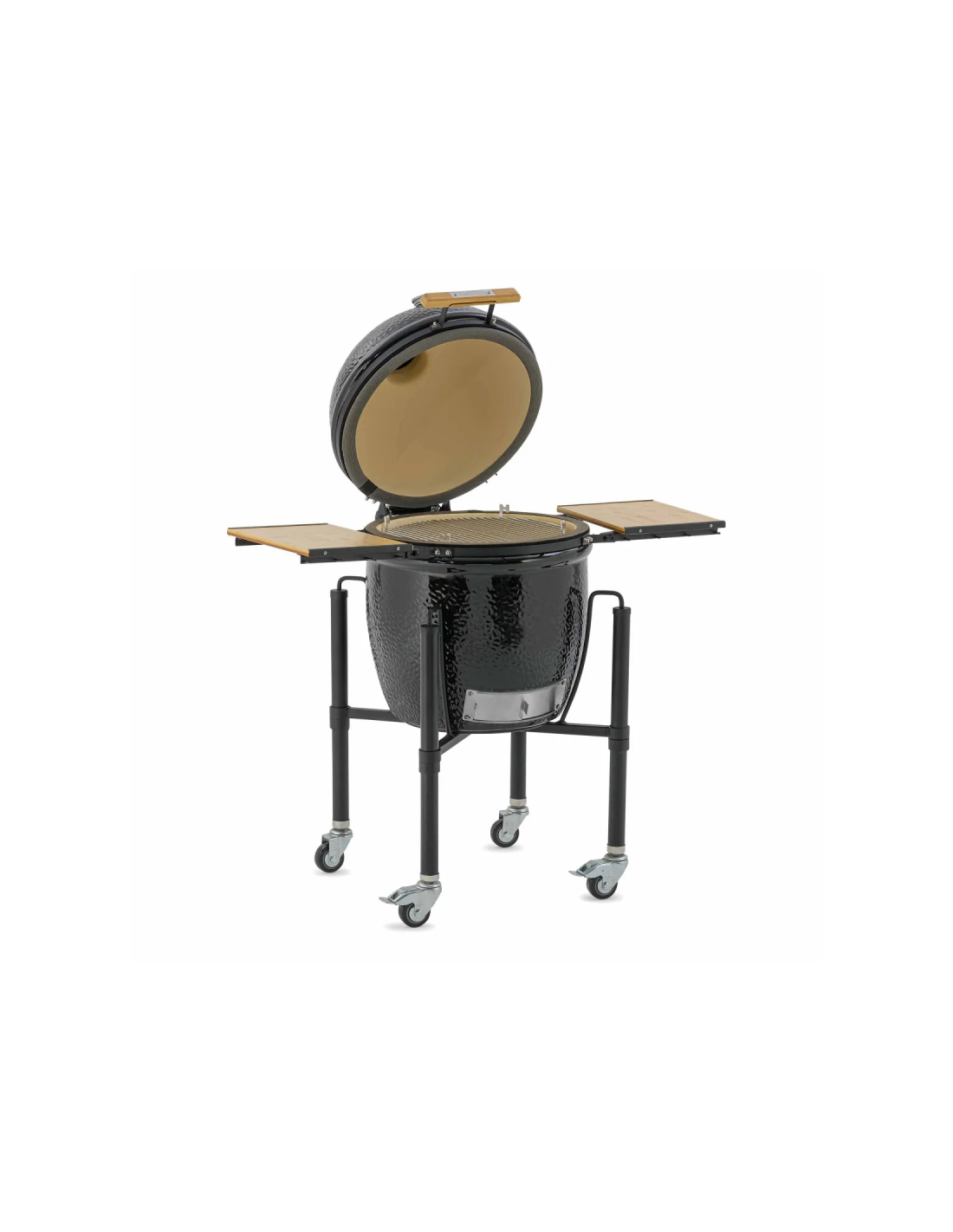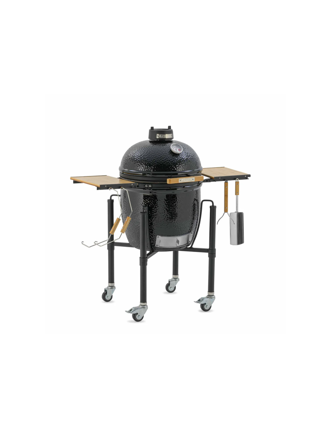 Este modelo de Kamado solo está disponible en negro y solo en la versión con carro y estantes laterales en bambú.